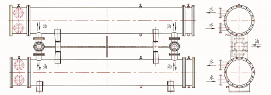管殼式換熱器采用雙聯(lián)結構,由兩只相同面積的冷油器和三通閥裝置構成,一只工作,一只備用,每個(gè)冷卻器能承擔整個(gè)系統的冷卻負荷,管板一頭固定,一頭浮動(dòng)、可拆卸的管束和水室箱蓋,便于運行過(guò)程中清洗、檢查和維修。管殼式換熱器材質(zhì),根據使用場(chǎng)所、水系統條件可有多種選擇。